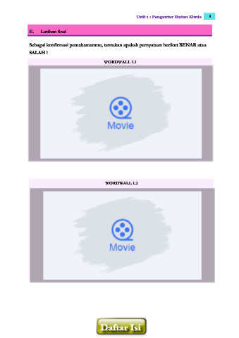 Unit 1 : Pengantar Ikatan Kimia 8 E. Latihan Soal Sebagai konfirmasi pemahamanmu, tentukan apakah pernyataan berikut BENAR atau SALAH ! WORDWALL 1.1 WORDWALL 1.2