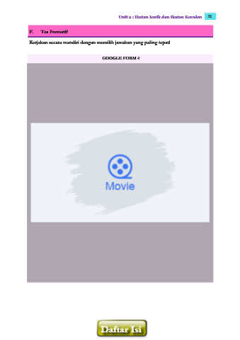 Unit 2 : Ikatan Ionik dan Ikatan Kovalen 22 F. Tes Formatif Kerjakan secara mandiri dengan memilih jawaban yang paling tepat! GOOGLE FORM 4