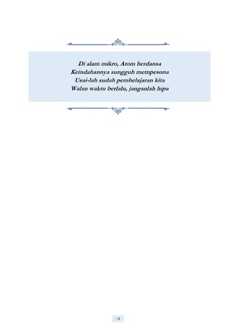 Di alam mikro, Atom berdansa Keindahannya sungguh mempesona Usai-lah sudah pembelajaran kita Walau waktu berlalu, janganlah lupa 14