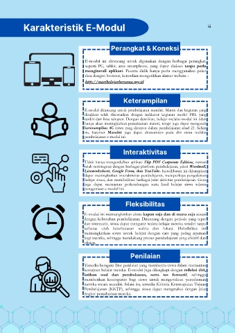 E-modul dirancang untuk pembelajaran mandiri. Materi dan kegiatan yang