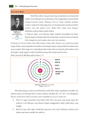 Model atom Bohr diberikan pada Gambar 1.13.