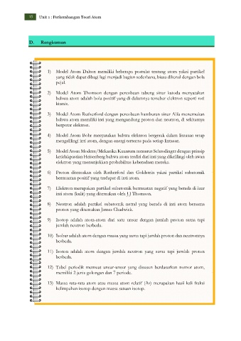 1) Model Atom Dalton memiliki beberapa postulat tentang atom yakni partikel