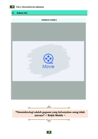 35 Unit 3 : Nanomaterial dan Aplikasinya H. Refleksi Diri GOOGLE FORM 6 “Nanoteknologi adalah gagasan yang kebanyakan orang tidak percaya” ~ Ralph Merkle ~ 35